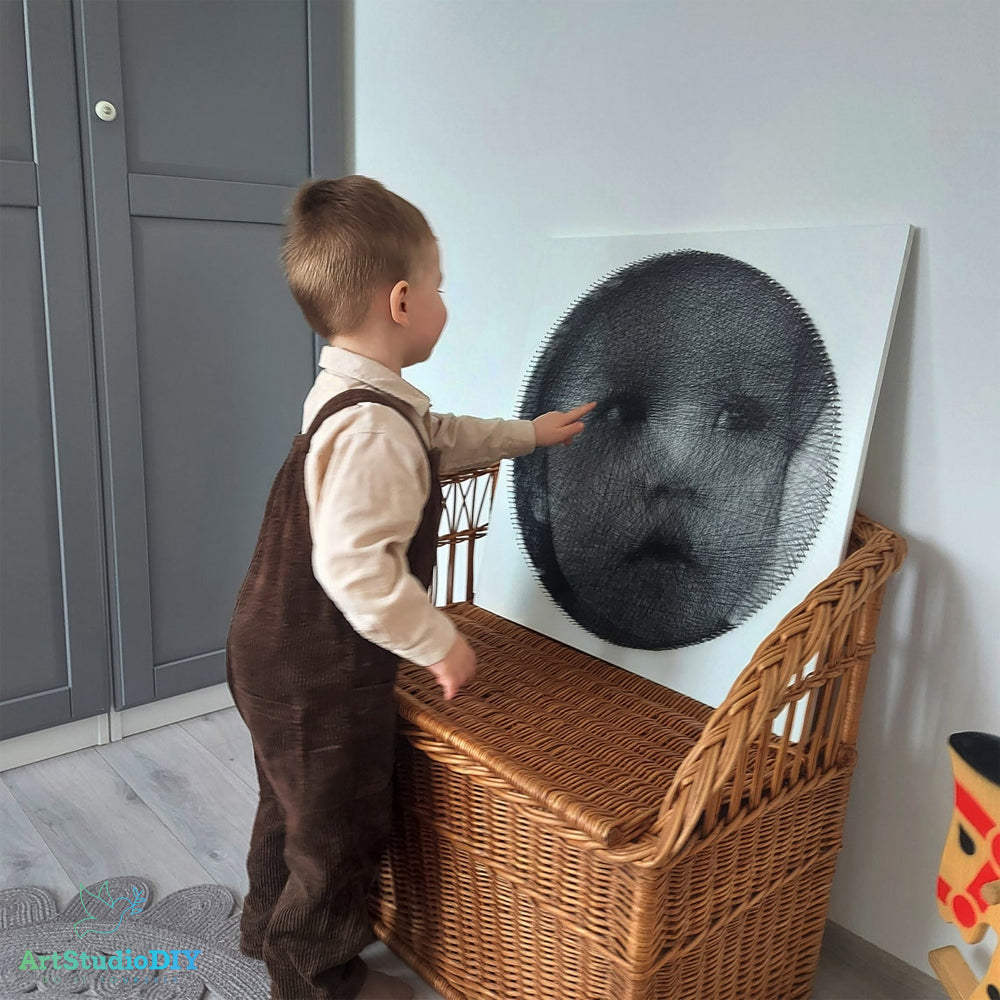 Ogni intreccio diventa un gesto meditativo, e ogni filo contribuisce a formare un volto pieno di emozione e significato.Che tu sia un principiante o un appassionato del fai-da-te, con il Kit String Art Personalizzato potrai vivere un’esperienza artistica sorprendente e vedere la magia nascere tra le tue mani.